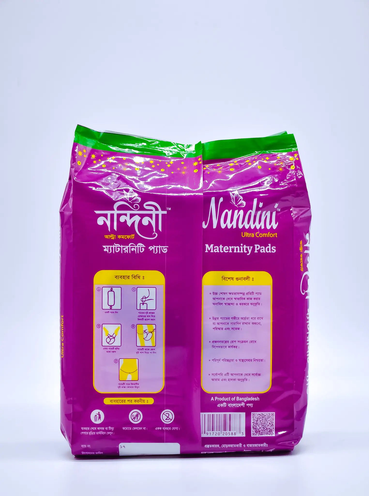 নতুন মায়েদের আরাম ও সুরক্ষার জন্য নন্দিনী আল্ট্রা কমফোর্ট ম্যাটারনিটি প্যাড ডিজাইন করা হয়েছে। বেল্ট সিস্টেমের সাথে আসে, যা ব্যবহার সহজ এবং নিরাপদ।